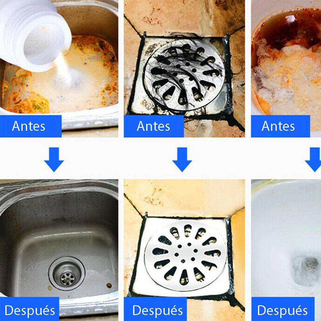 💦 No contamina el medio ambiente, la fórmula del destapador de drenajes no contiene ingredientes químicos ni corrosivos que afecten el agua.